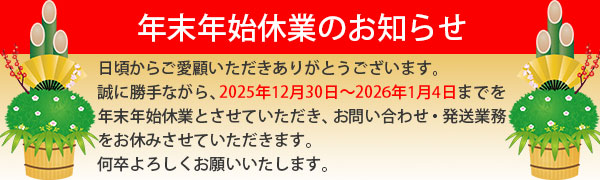 ※…倉庫休業により、誠に勝手ながら12/29(月)にいただきましたご注文は最短で1/5(月)の発送とさせていただきます。