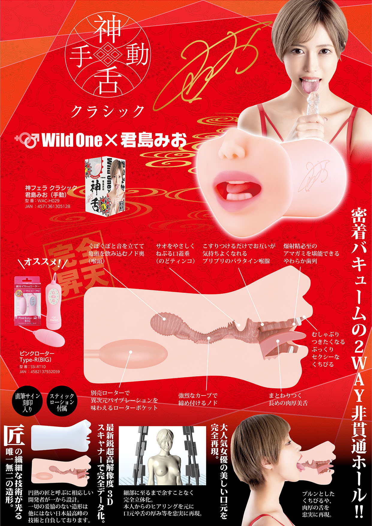妖艶な美貌のAV女優【君島みお】の神フェラホールに、非電動の超肉厚密着型が追加ラインナップ!